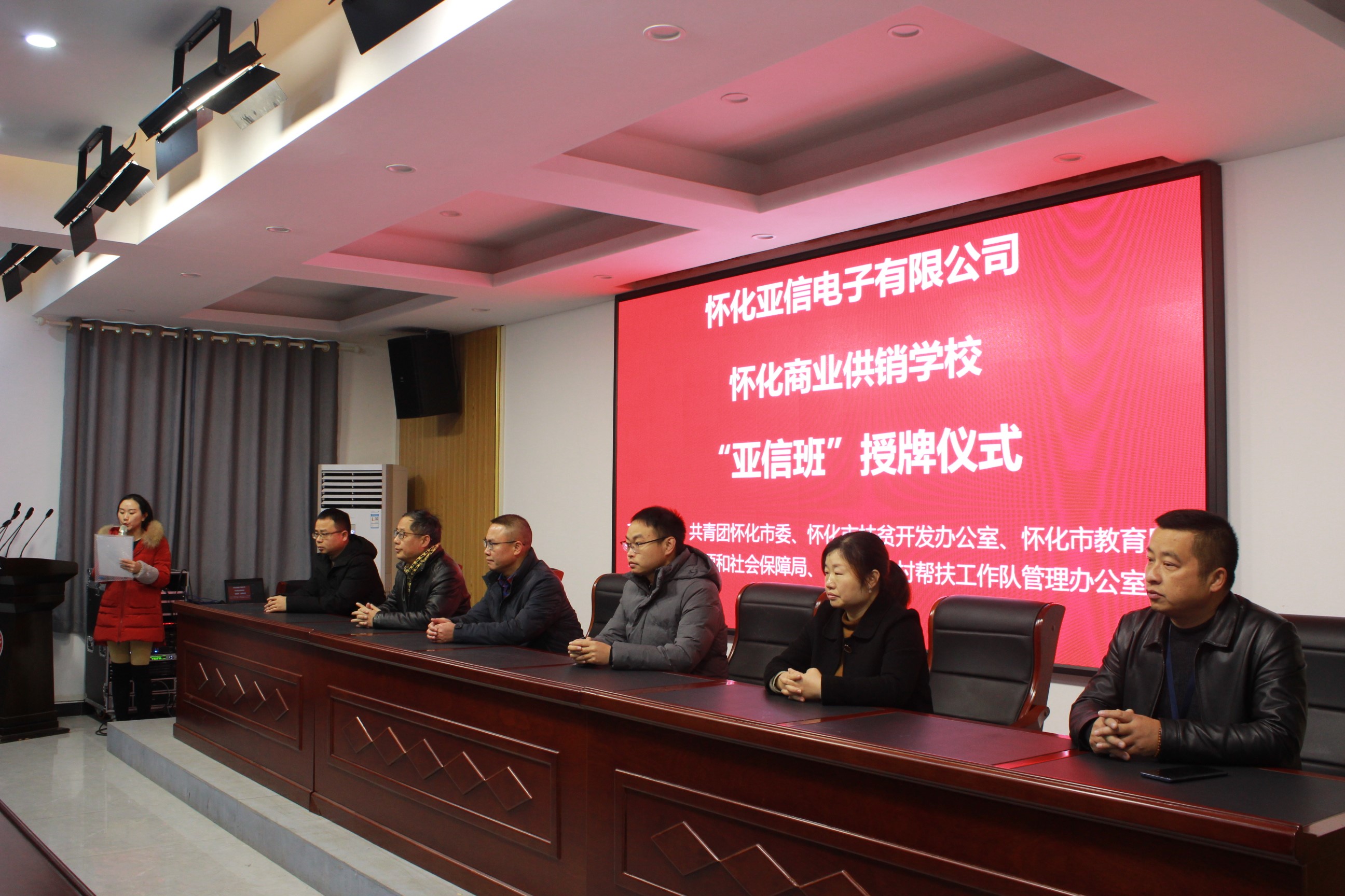 12月2日,由我校與共青團懷化市委、懷化市扶貧開發(fā)辦公室、懷化市教育局、懷化亞信電子有限公司聯(lián)合舉辦的山果計劃“懷化亞信班”在我校格致樓405隆重舉行授牌儀式。
