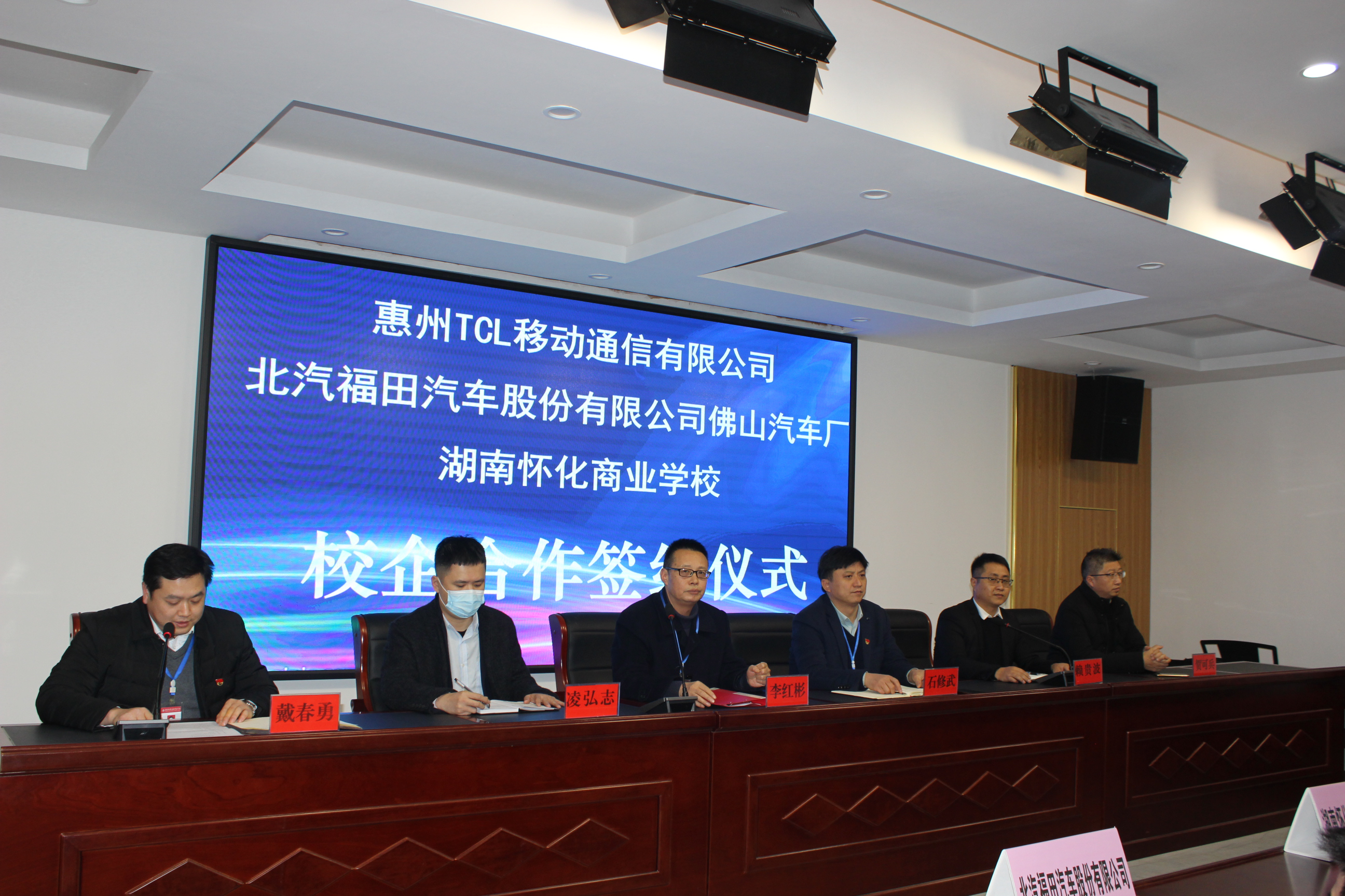 校黨委副書記、校長李紅彬代表學(xué)校致歡迎詞。他表示,與惠州TCL移動通信有限公司、北汽福田汽車股份有限公司兩家優(yōu)質(zhì)企業(yè)進(jìn)行校企合作,將再次拓寬我校的辦學(xué)渠道,豐富我校的教育資源。本次合作也是學(xué)校學(xué)習(xí)貫徹落實(shí)黨的十九屆五中全會精神、國家職業(yè)教育改革實(shí)施方案、教育部《職業(yè)學(xué)校校企合作促進(jìn)辦法》、教育部《職業(yè)教育提質(zhì)培優(yōu)行動計(jì)劃(2020—2023年)》、湖南省教育廳《關(guān)于加強(qiáng)新時代中等職業(yè)教育人才培養(yǎng)工作的若干意見》等文件精神、大力弘揚(yáng)勞模精神、勞動精神、工匠精神的具體行動體現(xiàn),必將為學(xué)校與行業(yè)優(yōu)勢企業(yè)進(jìn)一步開展深度合作發(fā)揮引領(lǐng)示范帶頭作用,為懷化的職業(yè)教育探索出校企深度融合的道路與模式