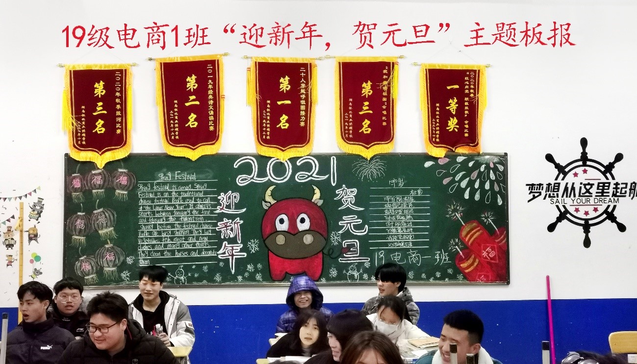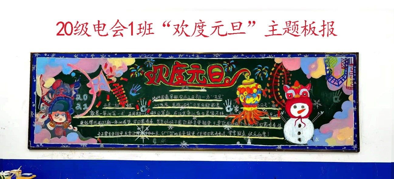 歲序更替,華章日新。2021元旦的鐘聲即將敲響,告別極不平凡的2020年,我們即將踏上全面建設(shè)社會(huì)主義現(xiàn)代化國家的新征程。近日,在學(xué)校黨委的領(lǐng)導(dǎo)下,在學(xué)生管理科的精心組織下,我校以“立德樹人奮進(jìn)擔(dān)當(dāng),砥礪前行共創(chuàng)輝煌”為主題開展了2021慶元旦迎新年系列活動(dòng),全校 1600余名師生,采用主題黑板報(bào)及班級慶元旦晚會(huì)的形式喜迎新年的到來。