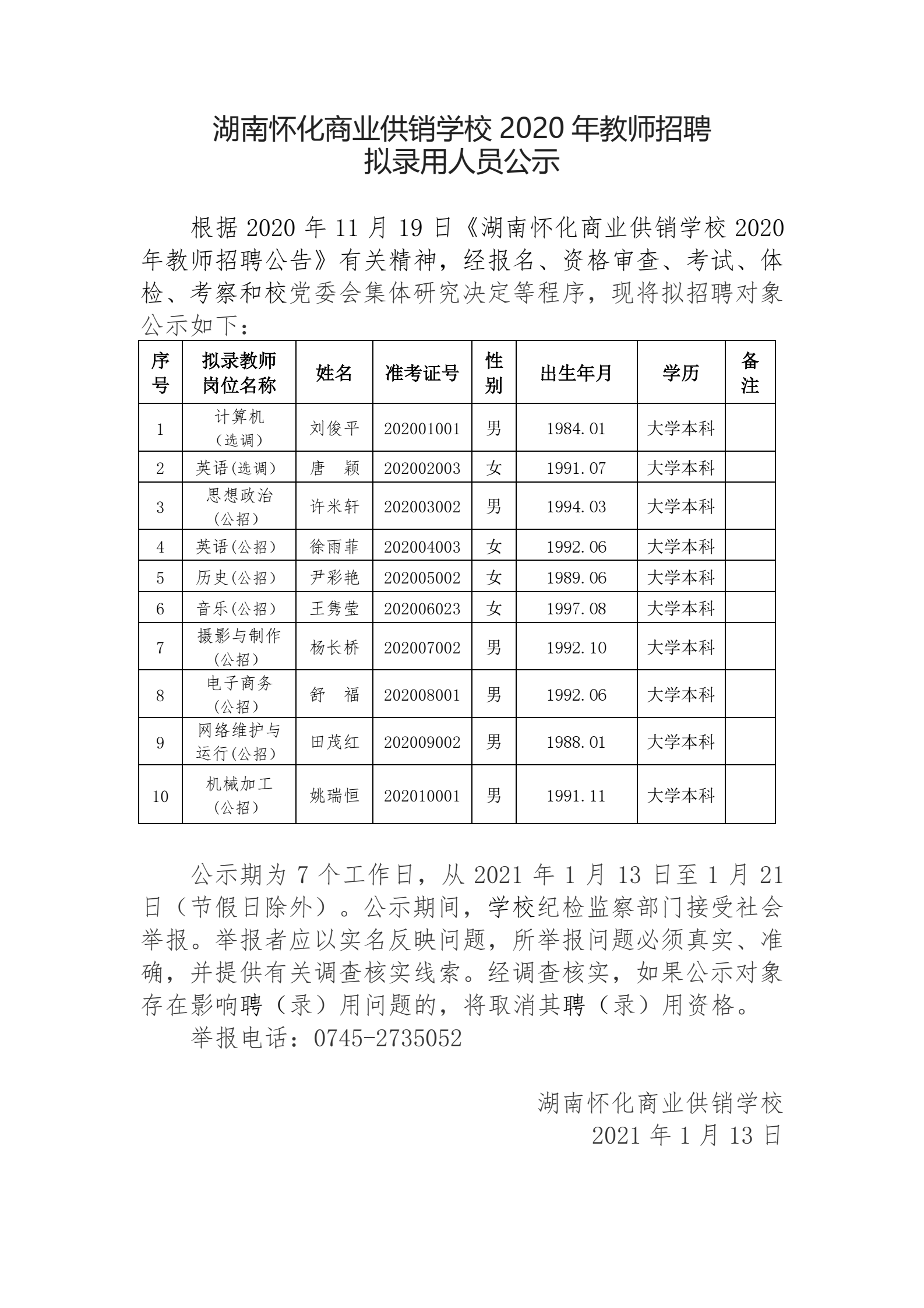 下一篇:湖南懷化商業(yè)供銷(xiāo)學(xué)校2021年引進(jìn)高層次及急需緊缺人才考察對(duì)象公示