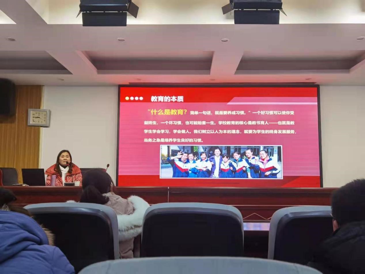 為貫徹落實(shí)“十四五”開局之年的全國教育大會精神,深化教育改革創(chuàng)新,落實(shí)立德樹人根本任務(wù),持續(xù)加強(qiáng)班主任隊(duì)伍建設(shè),新年伊始,我校誠摯邀請懷化市柔性高層次引進(jìn)人才暨我??妥淌?、“2020年湖南省最美班主任”的獲得者王朝霞教授來我校傳授經(jīng)驗(yàn),17日晚舉辦以“用制度規(guī)范行為 用師愛開啟心鎖”的班主任管理能力提升專題講座,學(xué)校黨委委員、副校長賀可兵出席,學(xué)??瓶崎L鄒聽聞等全體成員及班主任參加。